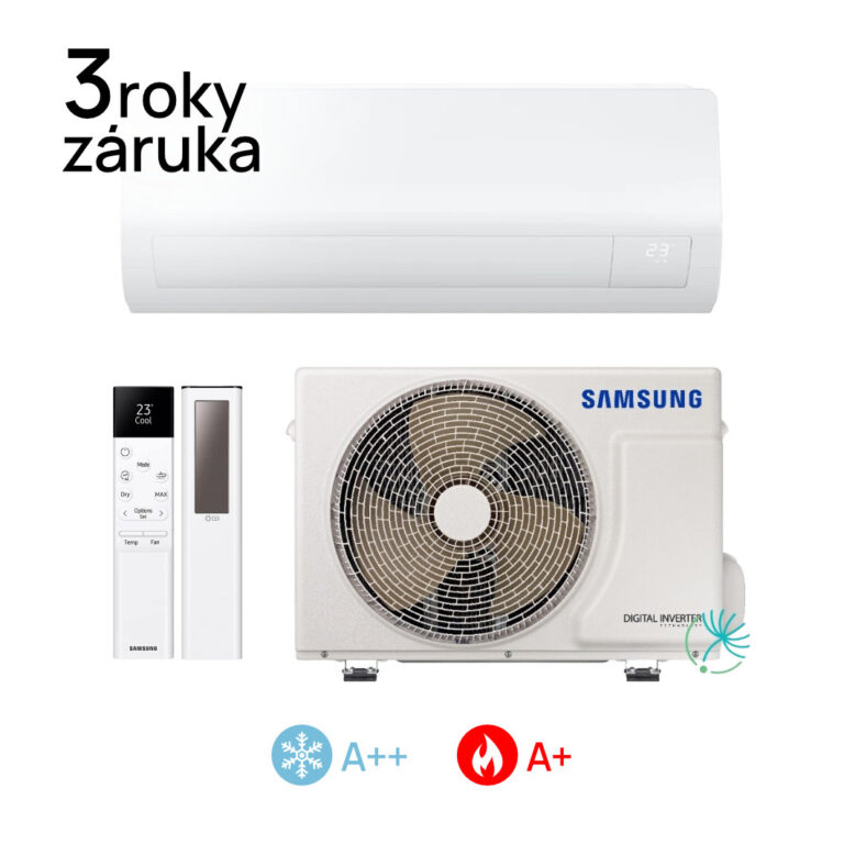 Tichý provoz – od 19 dB(A). AI Auto Comfort – automatická optimalizace režimu na základě analýzy okolního prostředí. Rychlé chlazení – chladí rychleji a do všech směrů i větších prostor. SmartThings – Wi-Fi vzdálená kontrola kdykoli a odkudkoli. Auto Clean – klimatizace se sama automaticky vyčistí. Easy Filter. Plus – antibakteriální filtr, který se snadno čistí. DuraFin™ Plus – předchází korozi, pro klimatizaci s dlouhou životností. Chladivo R32 – chladivo šetrné k životnímu prostředí. ECO Mode – efektivní chlazení, snížená spotřeba energie, nižší náklady. Good Sleep – režim kontrolující teplotu místnosti pro zajištění dobrého spánku. Infračervený solární ovladač v balení