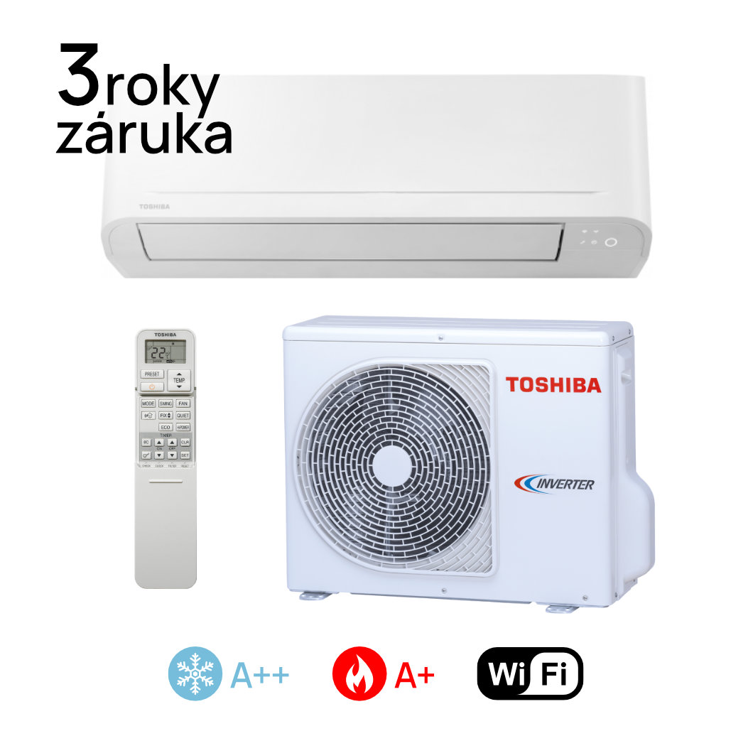 Excelentní poměr cena / výkon a výbava. Ekologické a úsporné chladivo R32. Elegantní nadčasový a moderní design. Čistě bílá barva vnitřní jednotky. Pasivní filtrace – Ultra Fresh filtr a základní prachový filtr (součást dodávky). Funkce samočištění proti plísním a bakteriím. Speciální hladký povrch výměníku „Magic coil“. Velmi tichý provoz vnitřní jednotky od 19 dB. Unikátní funkce Extra tichý provoz venkovní jednotky (potlačení hluku – hlučnost od 47dB). Temperování prostoru 8 °C, HiPower, tichý provoz. Možnost nuceného odtávání venkovní jednotky. Funkce PowerSelect – volba max příkonu/výkonu. Automatický restart po výpadku napětí. Toshiba Rotary kompresor, invertorové řízení. Možnost připojení na WiFi (volitelné příslušenství). Aplikace Toshiba Home AC Control.